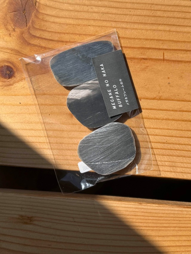 福岡の自社工房を持つ老舗眼鏡店の眼鏡フレームの製造過程で出てくる端材です。 メガネフレームをくり抜いた後の外側で、素材の種類はセルロイドとアセテートの二種類です。 セルロイドは古くからセルフレームの素材として使われてきた素材で、深みのある色で磨くと光沢とツヤがでるのが特徴です。 アセテートはセルロイドよりも透明度が高く、カラフルなフレームがつくれることが特徴です。 使い方はあなた次第。 壁に貼り付けるもよし、アート作品をつくるもよし、自由に創造してください。 〈サイズ〉 幅150mm×高さ50mm×厚み6mm程度(サイズに多少のばらつきがあります) ※ご希望の方は備考欄にセルロイド希望、アセテート希望とご記入ください。 また色は選ぶことができないのですが、ご希望にはできるだけ対応いたしますので、色見などもご希望があれば備考欄にてお伝えください。